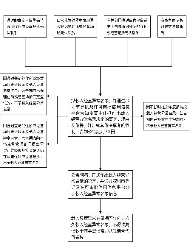 深圳公司被載入經(jīng)營異常名錄的原因及流程圖