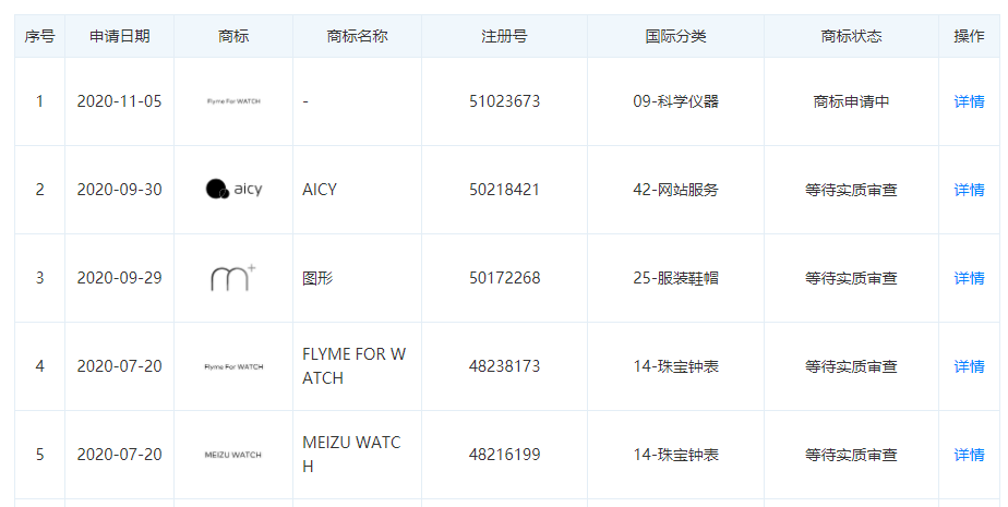 魅族近期注冊9類手表系統(tǒng)商標(biāo)