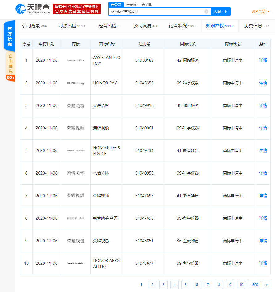 近日,華為技術(shù)有限公司新增多條商標(biāo)信息,商標(biāo)名為“榮耀視頻”、“榮耀錢包”,申請日期在11月6日。其中“榮耀視頻”的商標(biāo)國際分類涉及教育娛樂、科學(xué)儀器;“榮耀錢包”的商標(biāo)國際分類為金融物管,上述商標(biāo)狀態(tài)均為“商標(biāo)申請中”。