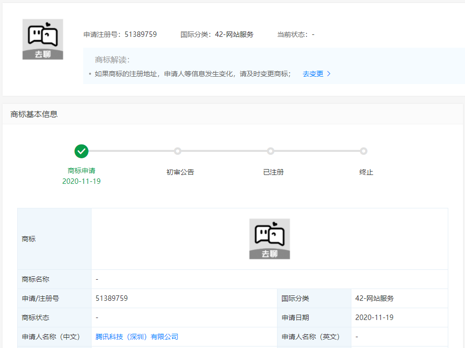 騰訊關聯(lián)公司申請“去聊”、“微信芽”等商標