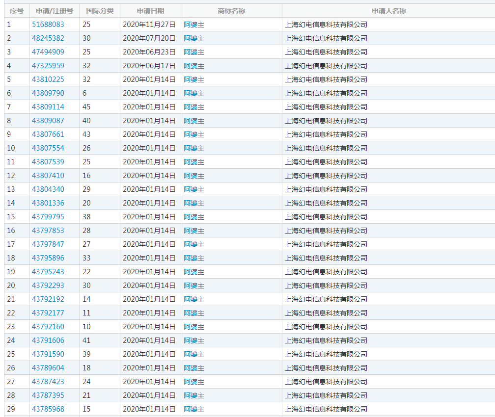 近日,B站關(guān)聯(lián)公司上?;秒娦畔⒖萍加邢薰拘略龆鄺l商標(biāo)申請(qǐng),其中包括名稱為“阿婆主”的商標(biāo),根據(jù)商標(biāo)查詢結(jié)果,似乎是申請(qǐng)了全類別商標(biāo)保護(hù)。